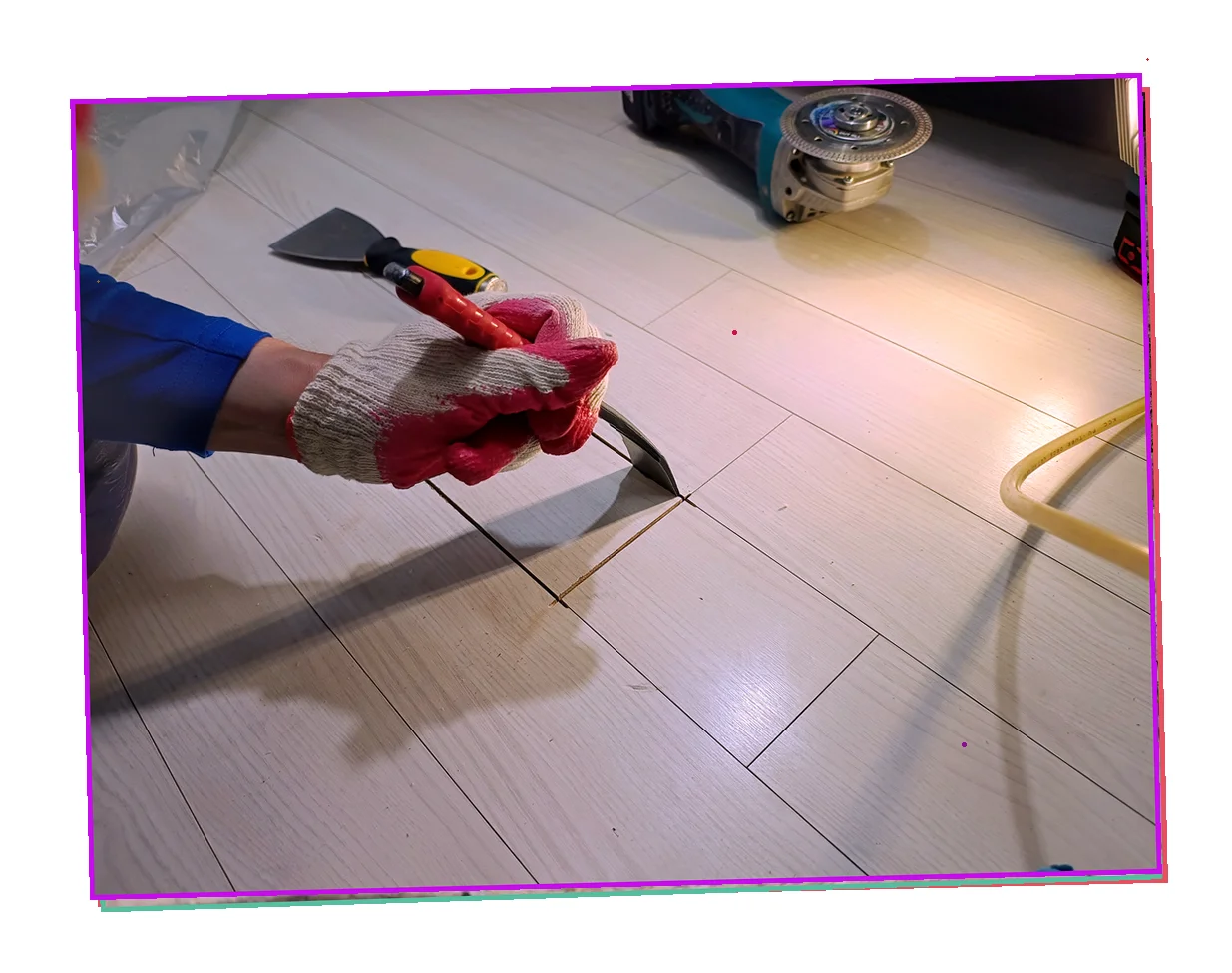 마감재 표면이 축축하게 젖어있는 상태로